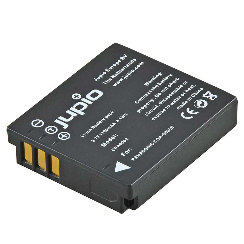 Jupio CGA-S005E / DMW-BCC12 / D-Li106 / DB-60 / DB-65 / BP-DC4 / LB-080 / NP-70 er et kompatibelt og højtydende lithium-ion batteri med en kapacitet på 1100 mAh, designet som erstatning for en række originale kamerabatterier fra bl.a. Panasonic, Leica, Ricoh, Fuji og Pentax.