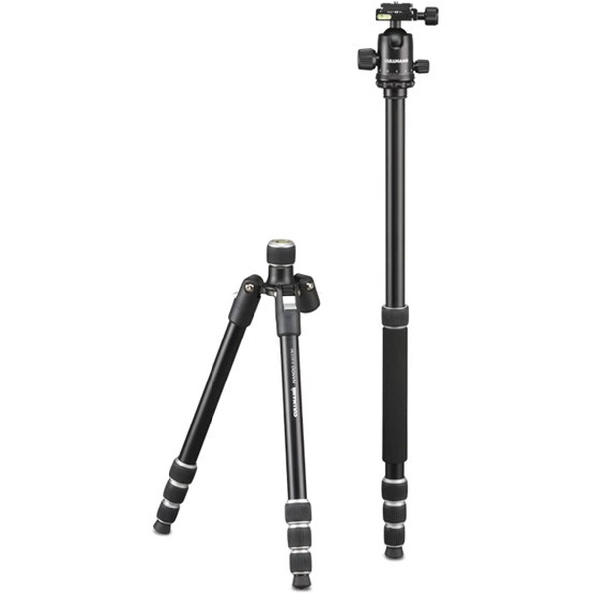 Midtersøjlen kan vendes, hvilket gør det muligt at komme helt tæt på motivet – velegnet til fx blomsterfotografering og produktoptagelser. Derudover kan ét ben skrues af og bruges som enbensstativ – en smart løsning til sport og action, hvor hurtige skud kræves.