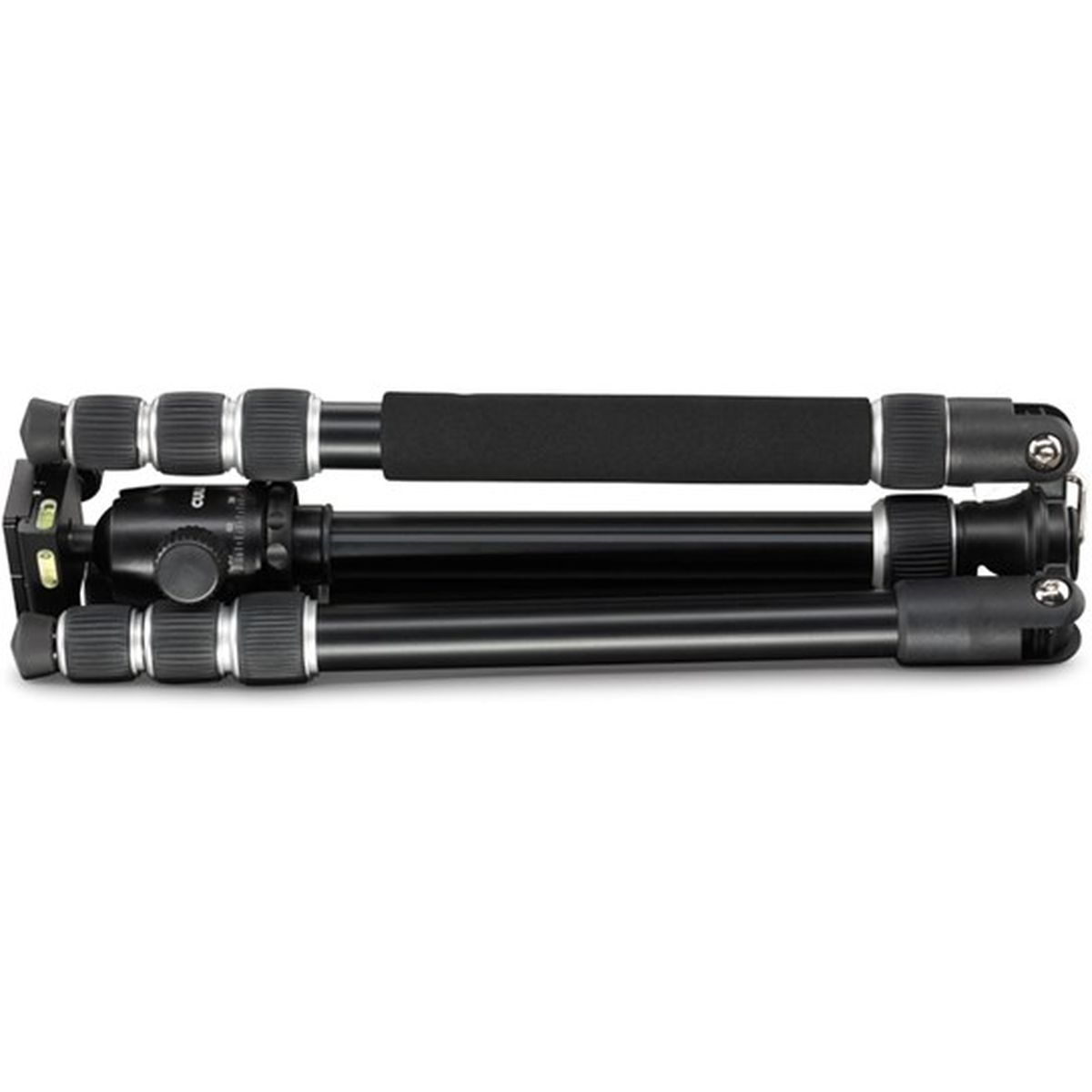 Kuglehovedet i aluminium er udstyret med en Arca-kompatibel hurtigkobling, der gør det hurtigt og sikkert at montere kameraet. De CNC-fræsede detaljer og de sølvfarvede udtrækspunkter på de sorte ben giver ikke blot stativet et elegant look, men også en øget holdbarhed og præcision.