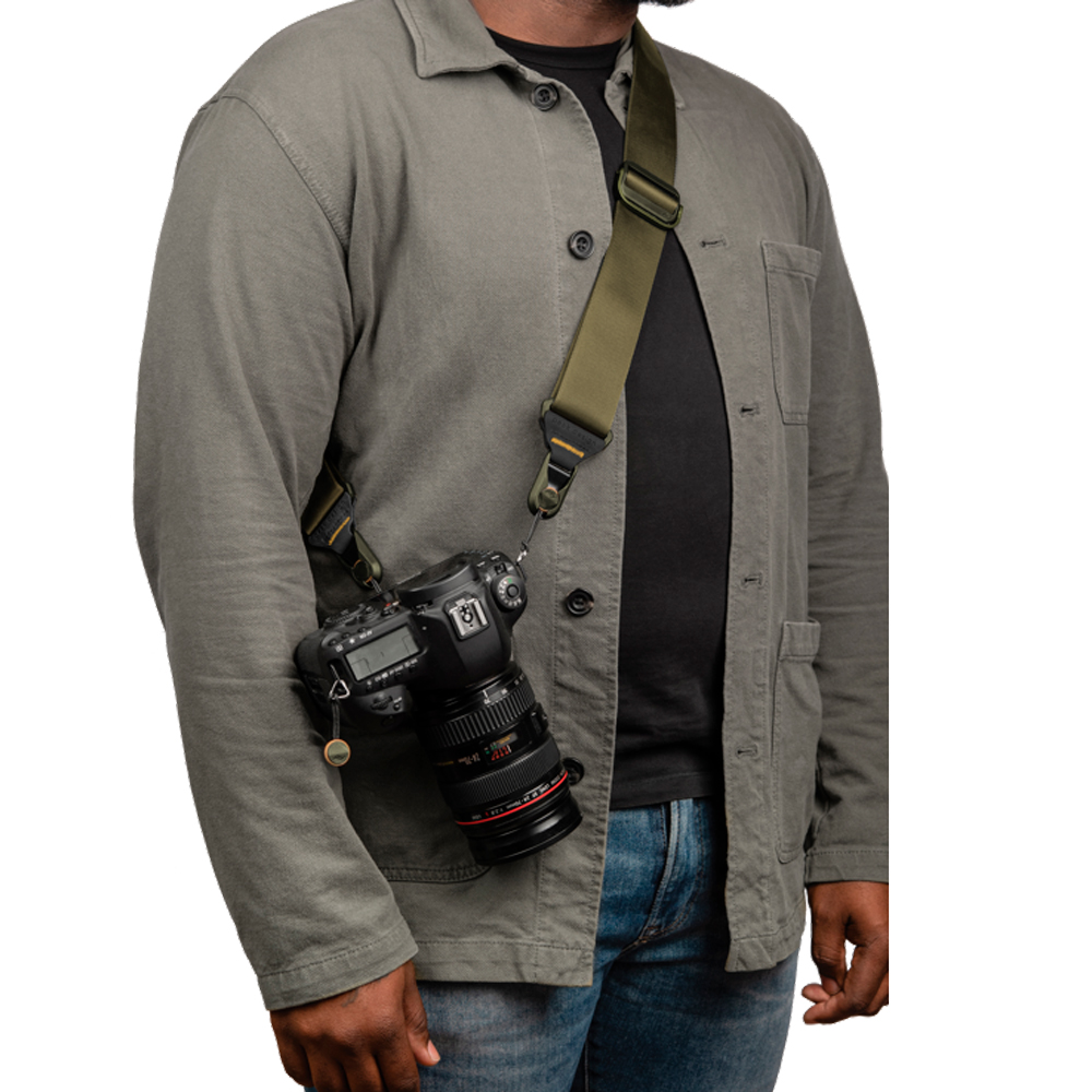 Peak Design Slide I Kelp er det oplagte valg til den seriøse fotograf, der ønsker en stærk, fleksibel og komfortabel kamerarem til professionelt brug.