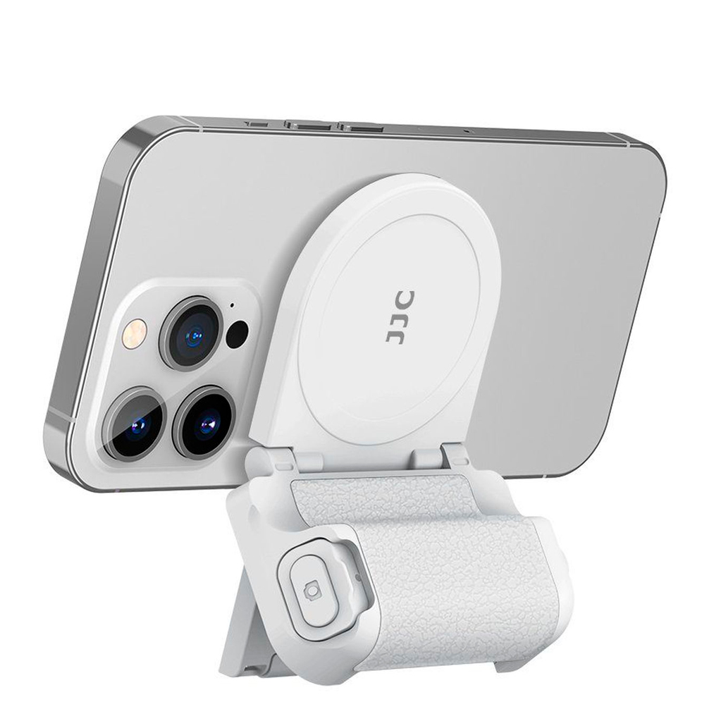 Med den hvide udgave af JJC Magnetic Phone Grip kombineres funktionalitet med elegant design. Det smarte greb forvandler din smartphone til et mere professionelt værktøj til optagelse og giver dig bedre kontrol, komfort og stabilitet. Uanset om du laver vlogs, livestreamer eller bare vil tage skarpe selfies, er dette greb et must-have for kreative mobilbrugere.