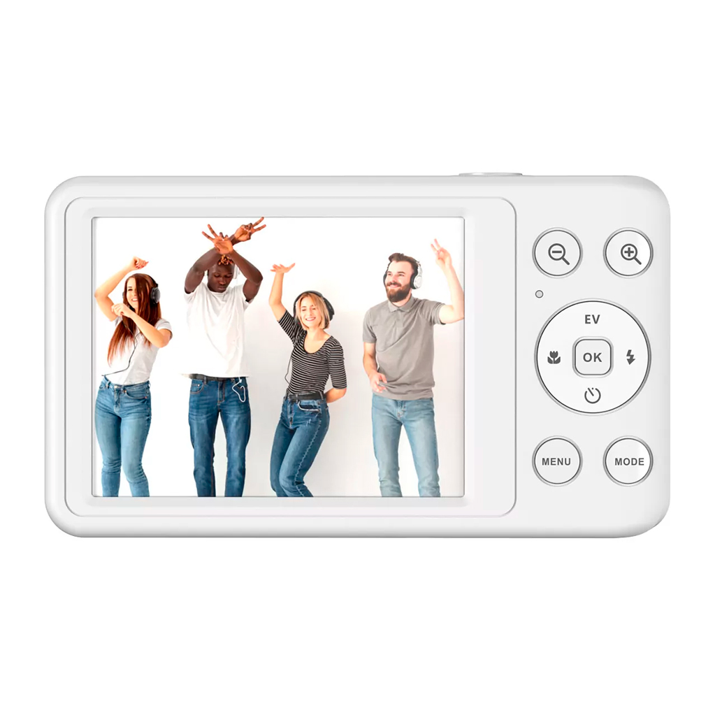 Kameraet understøtter MicroSD TF-kort og har et indbygget flashlys, så du også kan tage billeder under dårlige lysforhold. Et antivibrationssystem sikrer skarpere billeder – selv ved zoom eller hurtige bevægelser.