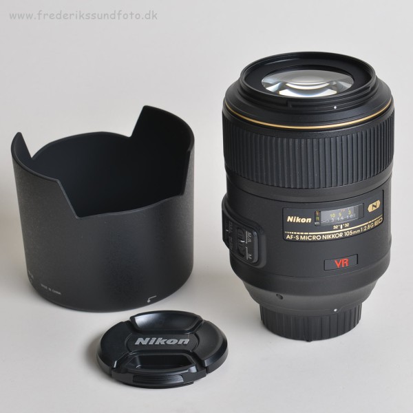 AF-S VR 105 f/2.8G IF-ED giver fordelene ved vibrations reduktion (VR) til makrofotograferingen. Objektivet tilbyder højopløsning, fine optiske specifikationer til digital og 35mm film format SLR kamera og gør brug af Nikons andengenerations vibration reduktions system (VR II), som muliggør fleksibel håndholdt fotografering med stabilisering af billedet, der svarer til, at du fotograferer med 4 gange hurtigere lukkertid, sammenlignet med et konvertionelt objektiv (ifølge Nikon performance test). SWM (Silent Wave Motor) og IF (Intern Fokusering) sikrer lydløs og sikker autofokus med hurtig skift imellem autofokus og manuel. Optisk performance er styrket med et ED (Extra-low Dispersion) glas, der minimerer chromatisk aberration, og Nano Crystal Coating reducerer drastisk flare, og giver perfekte skarpe billeder.