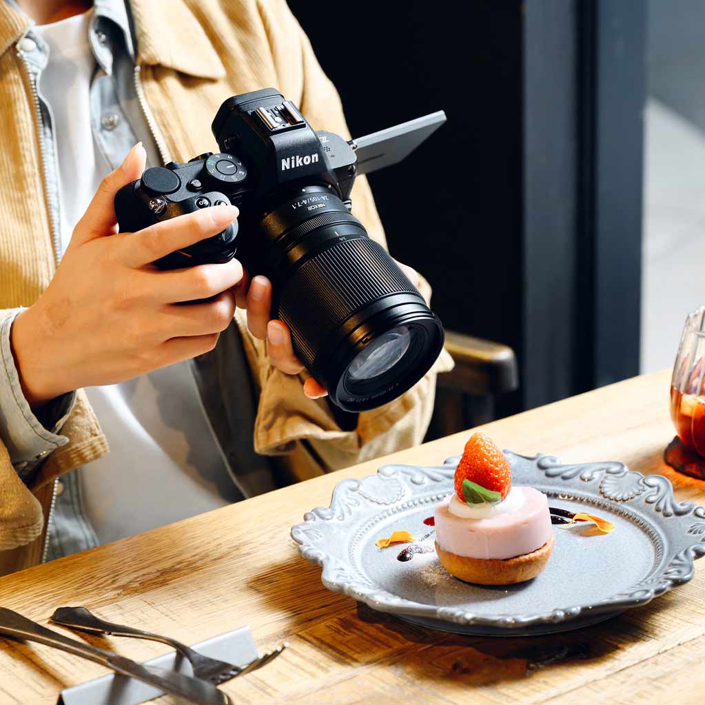 Objektivet dækker en bred brændvidde på 24-105 mm og er velegnet til alt fra storbyferier og naturture til indendørsfotografering og nærbilleder. Den nærmeste fokusafstand er blot 20 cm ved 24 mm og 28 cm ved 105 mm, hvilket gør det oplagt til kreative close-ups og mad- eller produktfotografering. Et maksimalt gengivelsesforhold på 0,5x giver mulighed for halvmakrooptagelser med smuk baggrundssløring.