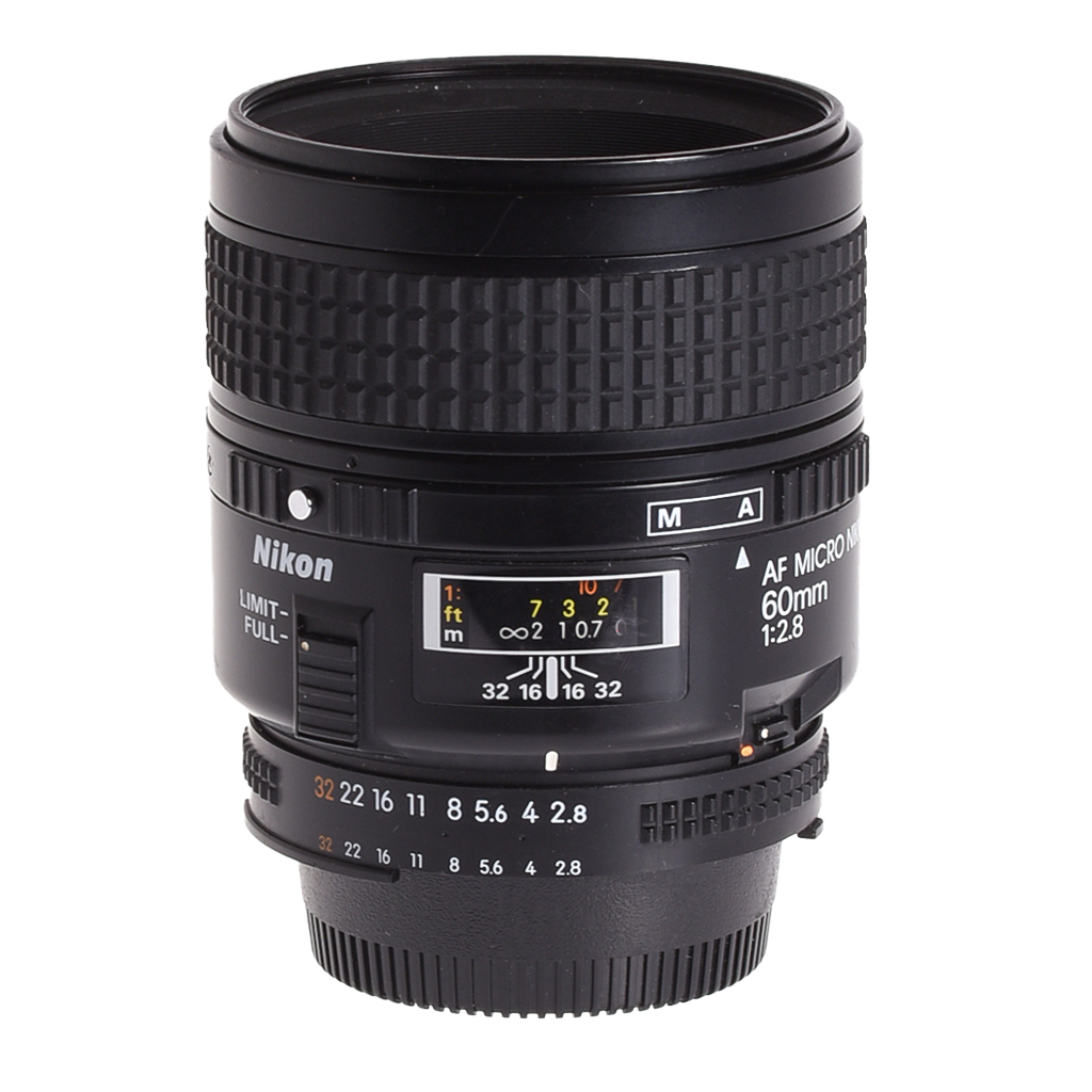 Nikon Micro-Nikkor AF 60mm f/2.8 D er et skarpt og alsidigt makroobjektiv med ægte 1:1 gengivelse perfekt til nærbilleder og produktfoto. Autofokus styres af kameraets motor. Den store blænde giver flot bokeh hvilket gør det ideelt til både makro og portræt.