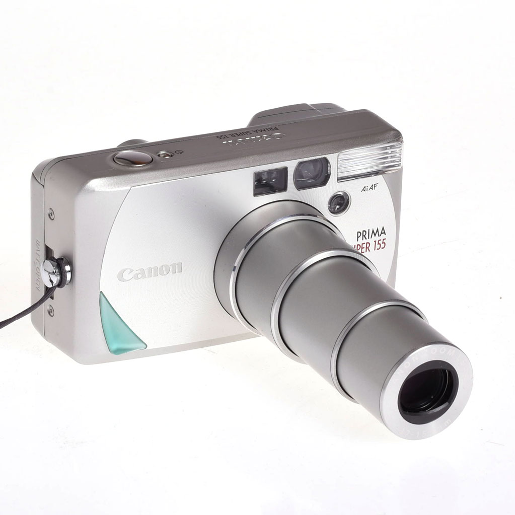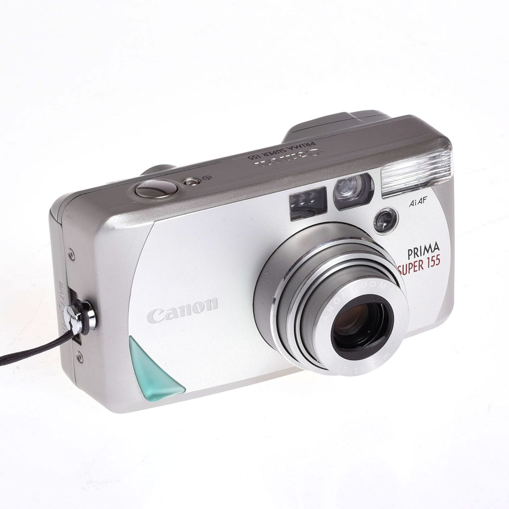 Canon Prima Super 155 bruger 135-film, altså klassisk 35mm film, og optager i billedformatet 24 x 36 mm. Kameraet understøtter automatisk aflæsning af DX-kodet film fra ISO 25-3200, så du nemt kan bruge både farvefilm og sort/hvid film til mange forskellige lysforhold. Derudover har modellen motoriseret filmtransport, indbygget zoomflash, selvudløser og programmeret lukker-/blændestyring, hvilket gør det til et meget komplet kompaktkamera i den analoge klasse.