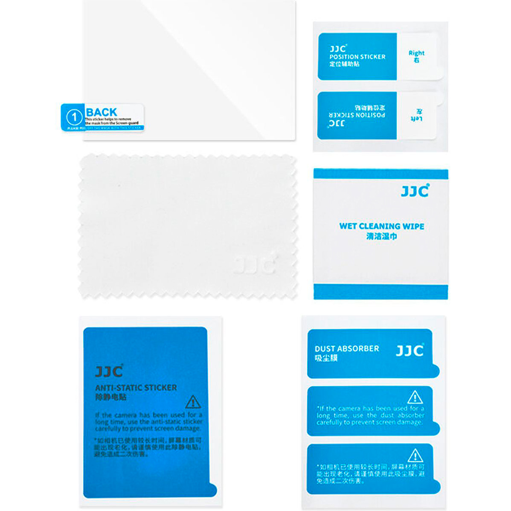 - 2 x PET-beskyttelsesfilm til sekundærskærm (afhængig af kameramodel)