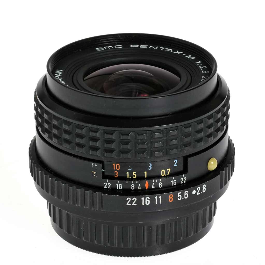 Pentax-M SMC 28mm f/2.8 er et af de mest anvendte vidvinkelobjektiver fra Pentax’ anerkendte M-serie. Objektivet er udviklet til analoge spejlreflekskameraer med K-fatning og kombinerer høj optisk kvalitet med et meget kompakt og solidt design – ideelt til fotografer, der ønsker klassisk mekanik og pålidelig ydeevne.